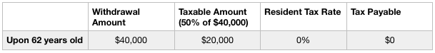 Only 50% of the withdrawal amount will be taxable, if the withdrawal is after the age of 62